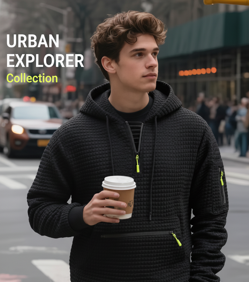 Sprika 3D Textured Hooded Sweatshirt – Casual Pullover with Drawstring Hood
